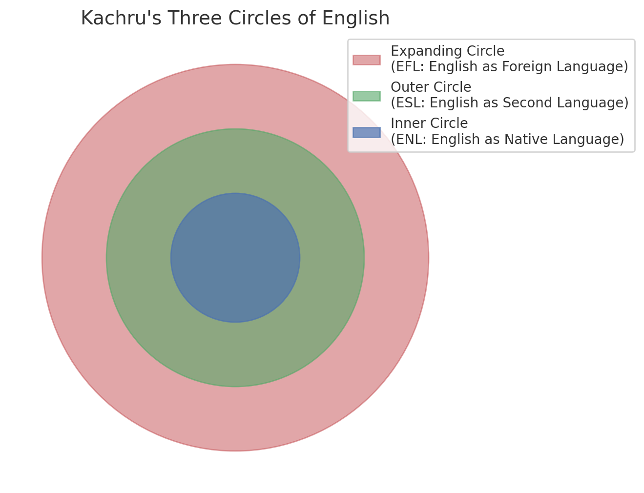 Braj B. Kachru (1985) menjelaskan penyebaran bahasa Inggris melalui tiga lingkaran: